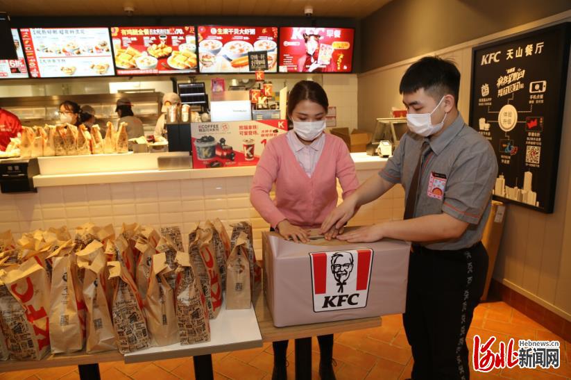 今天除夕,石家莊肯德基為一線工作者們送去愛心餐