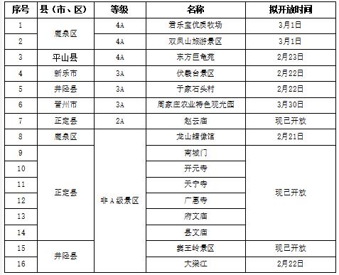 河北石家莊第二批開放旅游景區(qū)名單公布