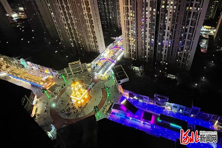 位于石家莊市裕華萬達廣場的“火車頭步行街”夜景鳥瞰。 李博攝