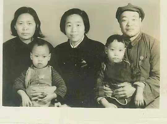 1952年拍攝于北京,楊天峰的爸爸媽媽抱著兩個兒子與嫂子(何英才之妻,居中者)合影,左邊小朋友為楊天峰,右邊為其三哥。