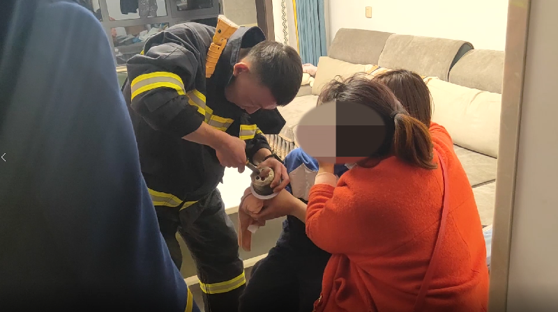 消防救援人員一邊安撫男孩,一邊利用尖嘴鉗對被卡部位進(jìn)行破拆,經(jīng)過半小時(shí)緊張營救,男孩手指成功脫困,被送往當(dāng)?shù)蒯t(yī)院進(jìn)行醫(yī)治。