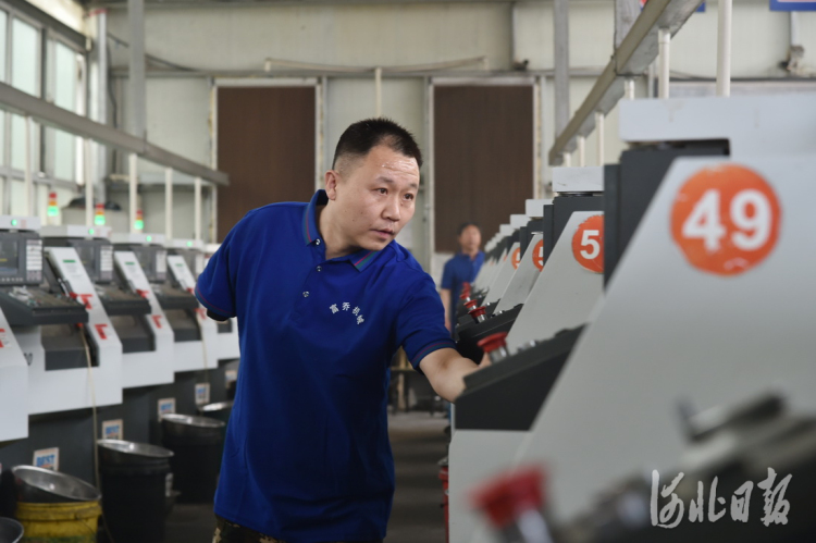 2021年5月13日,郭躍攀在數(shù)控機(jī)床前查看設(shè)備運(yùn)行工況,他說這份工作讓他很有成就感。 河北日?qǐng)?bào)記者趙海江攝