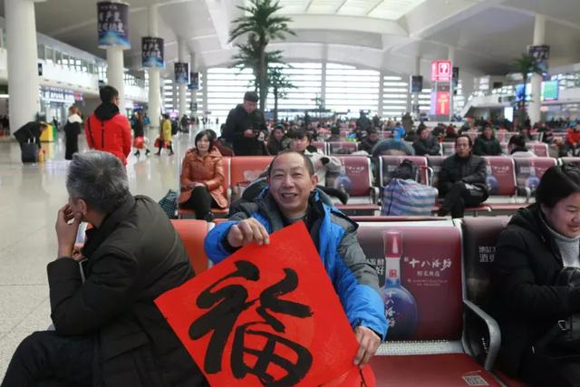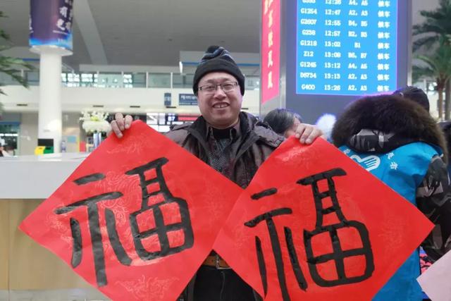 和以往“搶票大戰(zhàn)”不同,很多乘客都是當天就買到了車票。在曹妃甸工作的崔先生老家在山東德州!霸诰W(wǎng)上看到今年的票很多,我就沒著急,到了站才買票,很方便!贝尴壬吲d地說,自己已經(jīng)在唐山工作了兩年了,今年掙到了些錢,準備回家再給孩子父母買東西。采訪時,崔先生正興高采烈地拿著兩個墨跡未干的福字,“這是候車大廳的工作人員給我現(xiàn)場寫的,你看還有春聯(lián),這剛進大廳就感受到了年味兒,真不錯,想趕緊回到家人身邊分享這份喜悅!