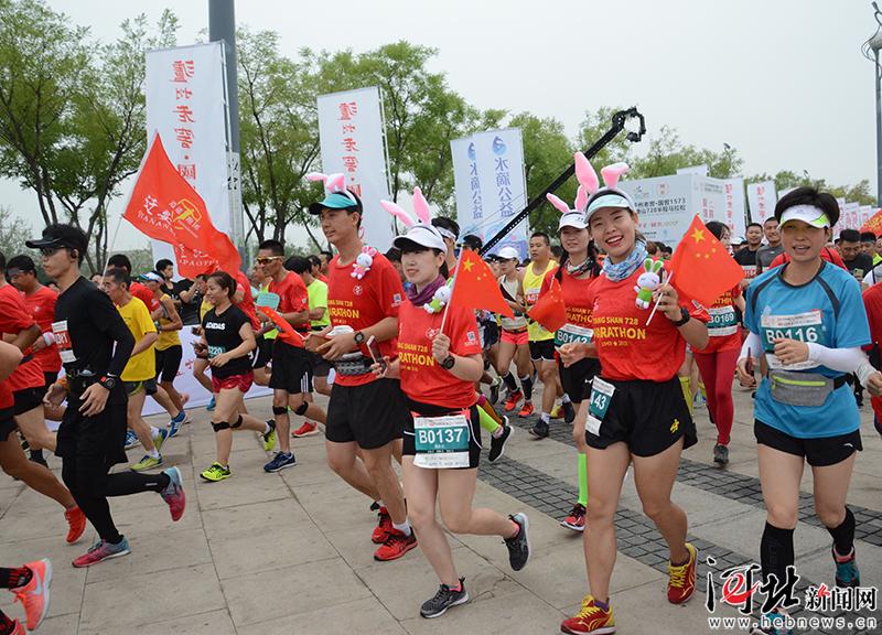 7月28日上午7時28分,第四屆唐山728半程馬拉松在南湖景區(qū)鳴槍開跑。圖為比賽過程中,參賽選手奮力奔跑,并感受南湖景區(qū)的美麗風(fēng)光。 通訊員張磊攝