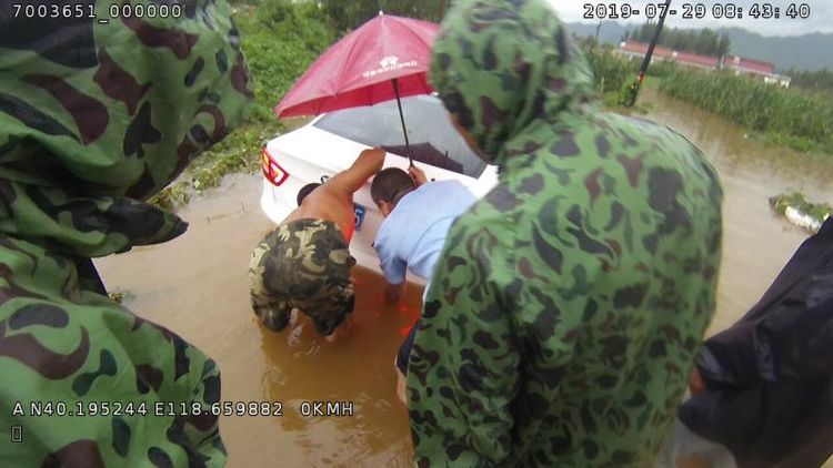 河北新聞網(wǎng)訊 2019年7月29日下午,河北省遷安市五重安鄉(xiāng)大雨傾盆。16時(shí)27分,何某報(bào)警稱:在大何莊磅房旁邊,自家車輛不慎掉進(jìn)水里,車門打不開,人出不來(lái),需要救助。警情就是命令,派出所張志偉所長(zhǎng)立即安排值班副所長(zhǎng)徐寶森帶隊(duì)處警進(jìn)行處置,并聯(lián)系救援車輛支援現(xiàn)場(chǎng)。值班警力迅速出警,第一時(shí)間到達(dá)現(xiàn)場(chǎng),徐寶森副所長(zhǎng)經(jīng)過(guò)仔細(xì)的現(xiàn)場(chǎng)勘察和觀察分析,制定了切實(shí)可行的救援方案,當(dāng)時(shí)不顧雨大水深,帶頭帶領(lǐng)警力跳進(jìn)齊腰深的水中對(duì)被困車輛和人員進(jìn)行救助。在派出所處警人員的共同努力下,經(jīng)過(guò)近1個(gè)小時(shí)的緊張救援,成功將被困車輛和人員轉(zhuǎn)移到安全地帶。