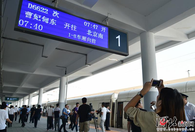 8月21日,一位旅客在站臺拍照留念。 記者趙海江攝