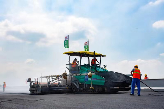 遷曹高速二期高模量瀝青路面成功鋪筑