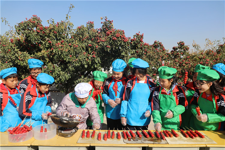 10月30日,豐潤區(qū)劉家營鄉(xiāng)明德小學(xué)的學(xué)生們在民間藝人的指導(dǎo)下學(xué)做糖葫蘆。