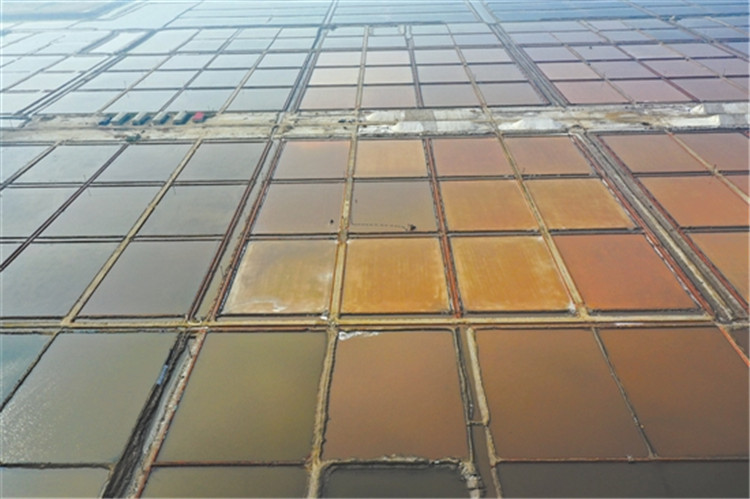眼下正值灤南縣海鹽產(chǎn)區(qū)秋季扒鹽時節(jié),縱橫排列的鹽池在陽光照射下猶如色彩斑斕的調(diào)色板。新華社記者牟宇攝影報道