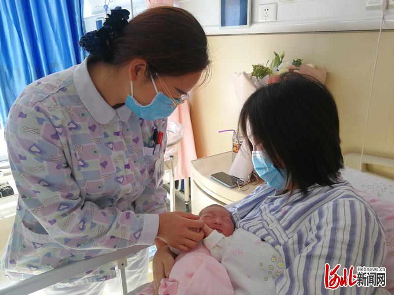 圖為新生兒母親張女士(右)在唐山市婦幼保健院醫(yī)護人員指導下照顧剛剛出生的寶寶。通訊員王斌攝