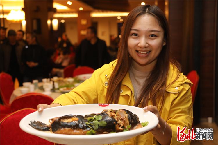 圖為在唐山國際旅游島首屆溫泉河豚美食節(jié)上,游客展示鮮美的河豚。通訊員徐小躍攝