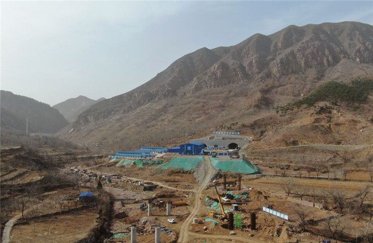 3月16日,工人在遷安市大五里鄉(xiāng)境內(nèi)的京秦高速公路遵(遵化)秦(秦皇島)段干柴峪隧道建設(shè)工地施工(無人機(jī)照片)。新華社記者楊世堯攝