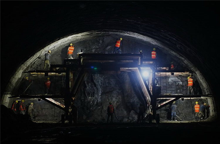 3月16日,工人在遷安市大五里鄉(xiāng)境內(nèi)的京秦高速公路遵(遵化)秦(秦皇島)段干柴峪隧道建設(shè)工地施工。新華社記者楊世堯攝