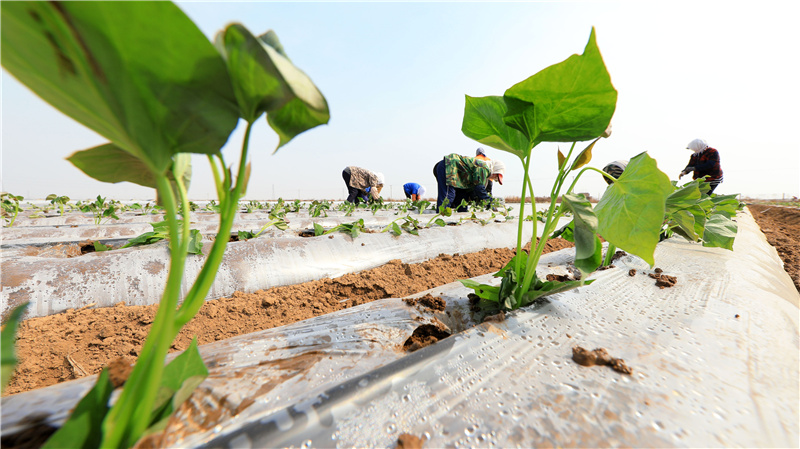 連日來,河北省唐山市灤南縣農(nóng)民搶抓農(nóng)時(shí),采用雙層覆膜技術(shù)種植紅薯,可比常規(guī)裸地紅薯提早1個(gè)月收獲。據(jù)了解,今年該縣紅薯種植面積預(yù)計(jì)超過3萬畝,紅薯產(chǎn)業(yè)成為當(dāng)?shù)厝罕娫鍪罩赂坏闹匾緩。新華社發(fā)(張永新 攝)