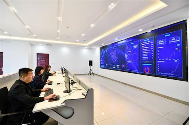 5月7日,河北省唐山市智慧泊車指揮中心的工作人員通過大屏幕監(jiān)測停車場運行情況。新華社記者牟宇攝