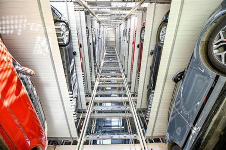 5月7日,汽車從河北省唐山市城區(qū)一座立體停車樓駛出。新華社記者牟宇攝