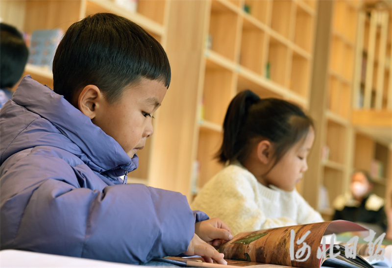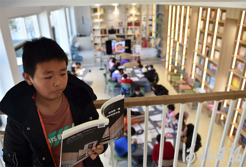 12日3日,孩子們在新穎時尚的逐光公益圖書館閱讀。