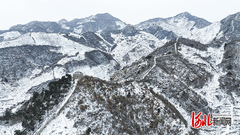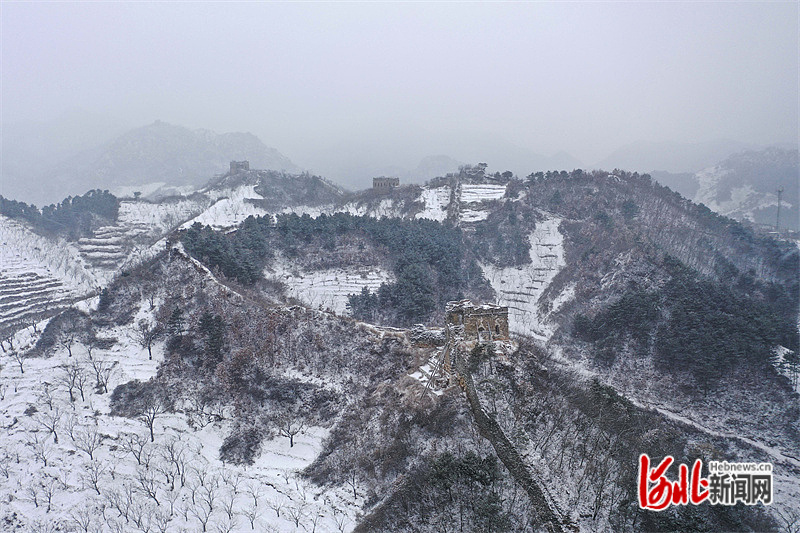 12月14日,在河北省遵化市拍攝的長城雪景(無人機(jī)照片)。