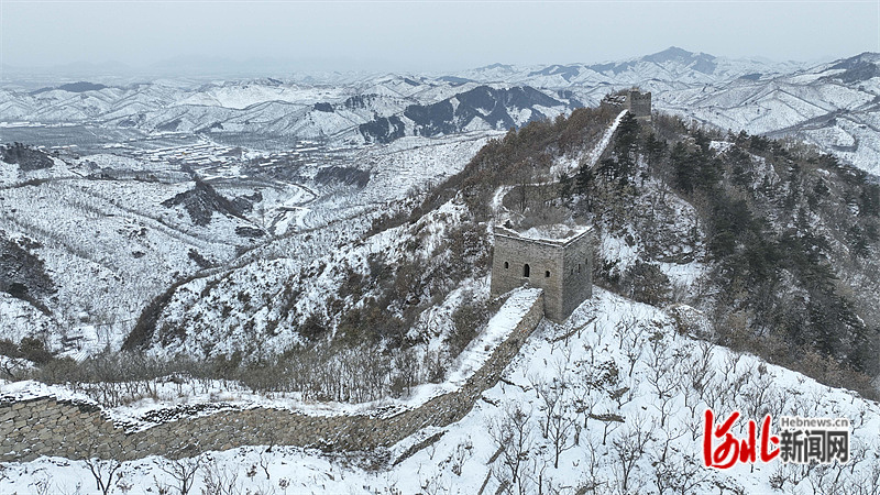 12月14日,在河北省遷西縣拍攝的長城雪景(無人機(jī)照片)。