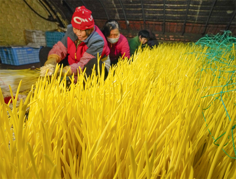 2月7日,河北省遵化市西留村鎮(zhèn)朱山莊村農(nóng)民在收獲蒜黃。