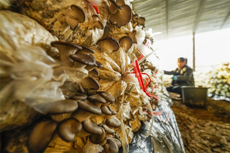 2月7日,河北省遵化市東新莊鎮(zhèn)東新莊村農(nóng)民在收獲袖珍菇。