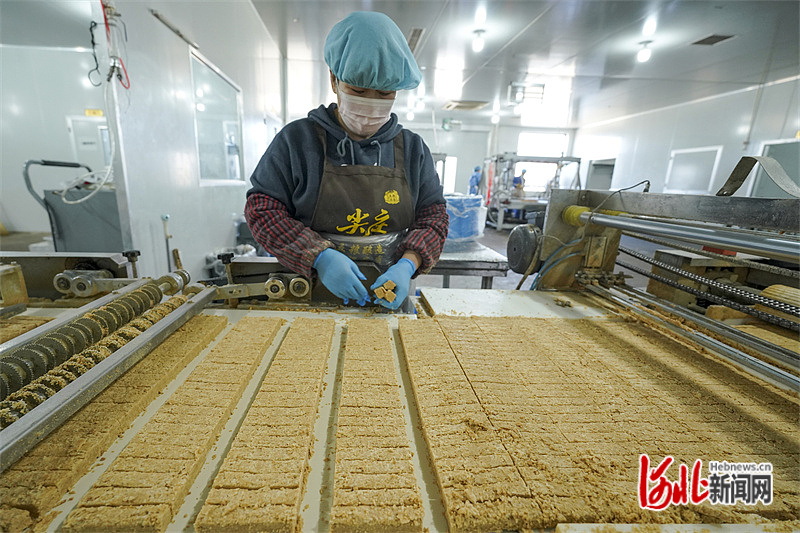 唐山市豐南區(qū)小集鎮(zhèn)一家食品加工企業(yè)的工人在生產(chǎn)車間趕制訂單產(chǎn)品。