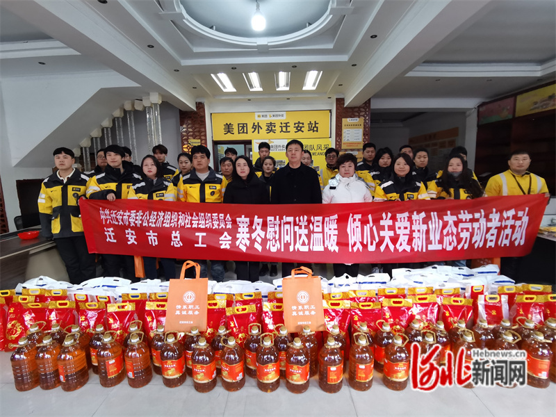 圖為慰問美團外賣遷安站外賣騎手。吳海民攝