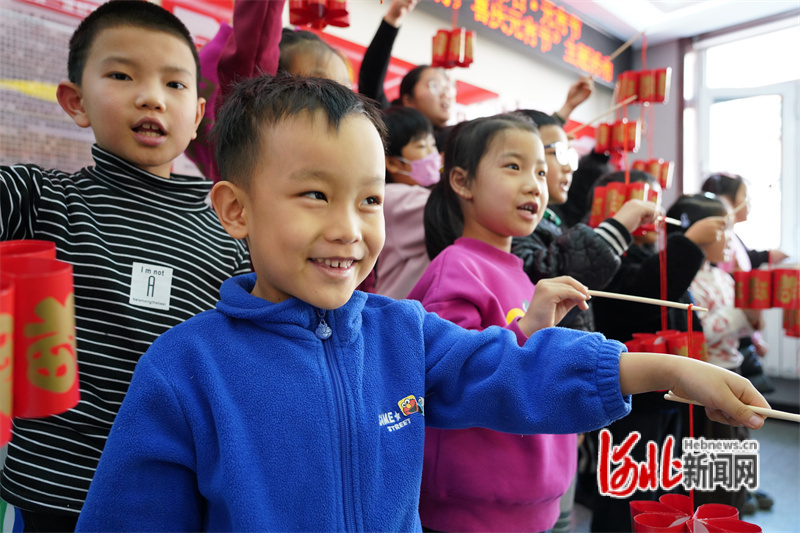 圖為2月23日活動現(xiàn)場,巾幗志愿者教孩子們制作“紅包花燈”。