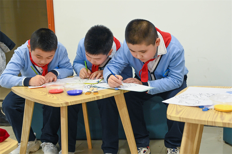 圖為活動現(xiàn)場,小朋友學(xué)習(xí)制作年畫。郭寶強攝