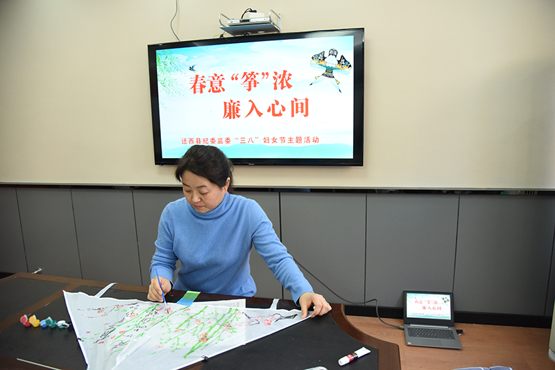 在第114個(gè)“三八”國(guó)際勞動(dòng)?jì)D女節(jié)來臨之際,遷西縣紀(jì)委監(jiān)委組織開展“春意‘箏’濃 廉入心間”主題活動(dòng),邀請(qǐng)機(jī)關(guān)女紀(jì)檢監(jiān)察干部共繪廉潔風(fēng)箏,營(yíng)造崇廉尚廉的濃厚氛圍。