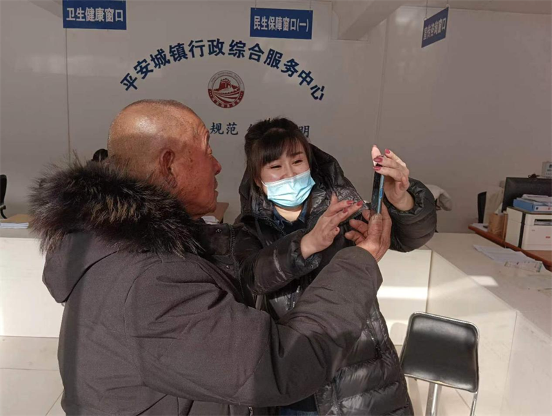 近日,河北省遵化市平安城鎮(zhèn)紀(jì)委工作人員向高齡老人了解網(wǎng)上生存認(rèn)證情況。