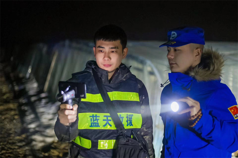 李蓋(右),樂亭縣藍天救援隊隊員;常光鵬(左),樂亭縣藍天救援隊隊員。