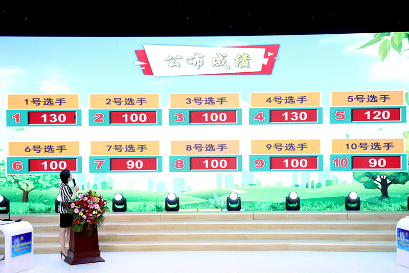 5月26日,在河北省隆堯縣融媒體中心演播大廳,主持人在公布參賽選手成績(jī)。