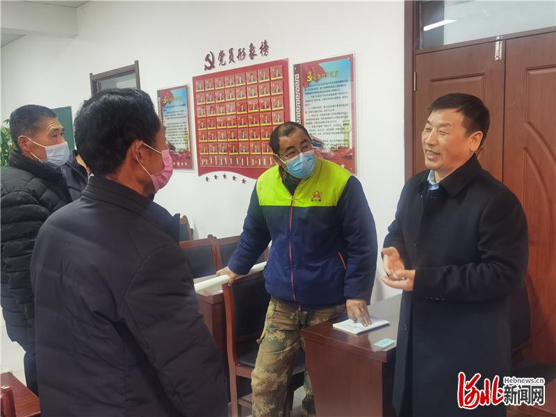 景東林(右二)來到麥田里,和種糧大戶們現(xiàn)場討論如何促苗生長奪豐收。  河北日報記者邢云攝