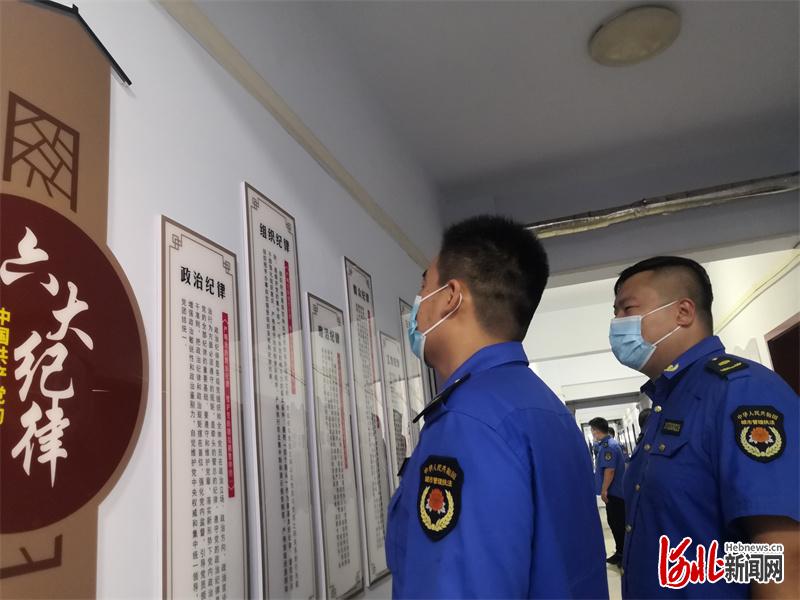 圖為邢臺(tái)市城管局建筑垃圾管理服務(wù)中心利用樓道打造的廉政文化長(zhǎng)廊。