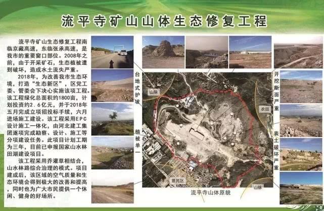 流平寺礦山山體生態(tài)修復(fù)工程計劃通過采取地面采礦區(qū)恢復(fù)植樹造林、礦山開采邊坡恢復(fù)種植灌木的方式,實現(xiàn)防止水土流失及生態(tài)重建的目標(biāo)。2019年已栽植云杉、油松、絲棉木等喬木3976株;回填、倒運土方9.5萬立方米。