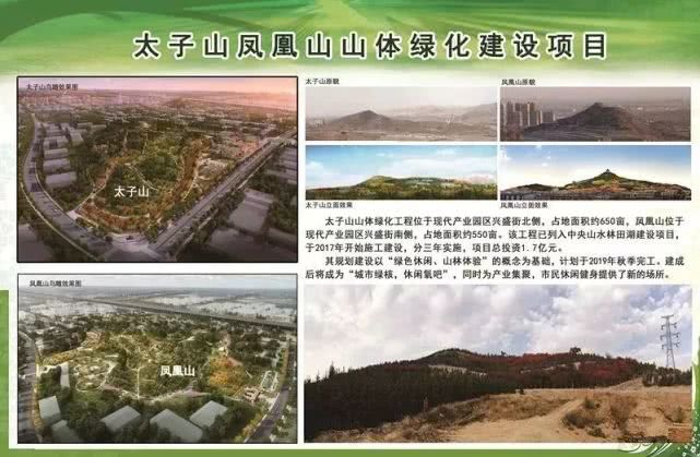 太子山、鳳凰山山體園林綠化建設(shè)項目計劃通過栽植各類喬灌木及市政設(shè)施打造集休閑運動、綠色生態(tài)為一體的淺山山體綠化。2019年已栽植白皮松、海棠、火炬、國槐、油松等喬木30687株;栽植地被5000平方米;草花1300平方米;建造景亭2座。