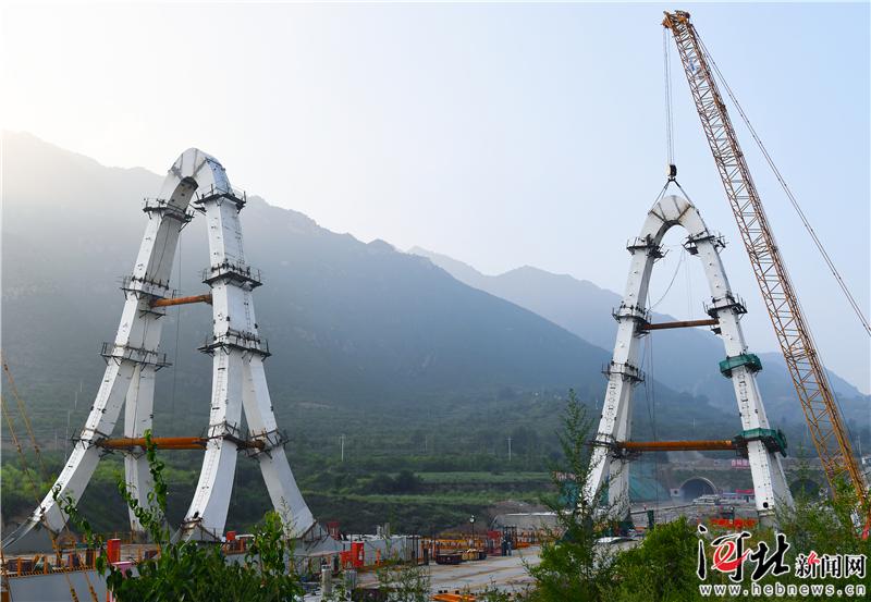 7月20日15時50分,延崇高速河北段GQ3標杏林堡大橋鋼索塔完成最后一個節(jié)段吊裝,標志著中鐵大橋局承建的延崇高速河北段GQ3標杏林堡大橋雙線主塔成功封頂,工程取得了關鍵性進展。據悉,杏林堡大橋為延崇高速項目的節(jié)點橋梁工程,是往返2022年冬奧會延慶和崇禮賽區(qū)的必經之路,鋼索塔輪廓形成門的造型,寓意“奧運之門”。延崇高速全線預計今年年底通車。 記者耿輝 通訊員孫慧軍攝影報道
