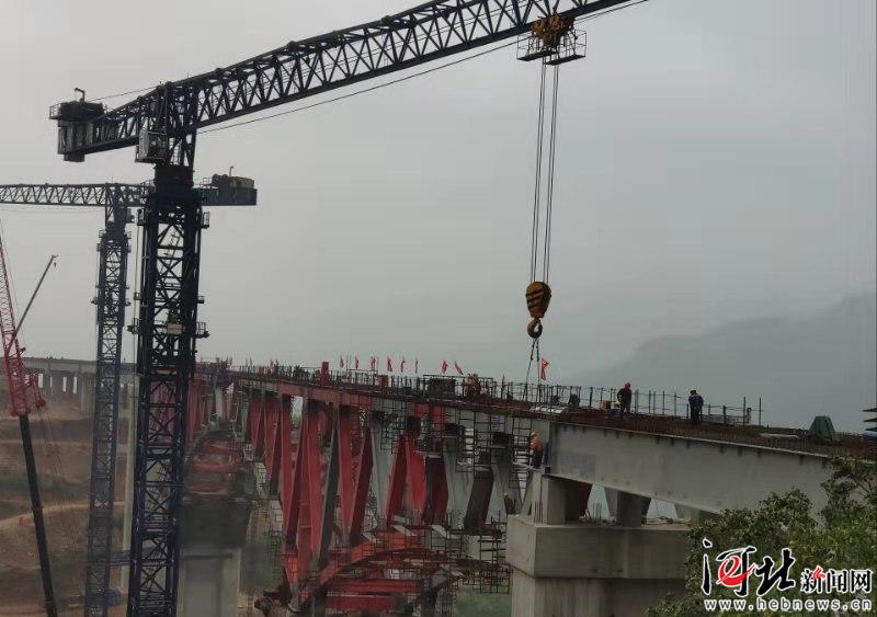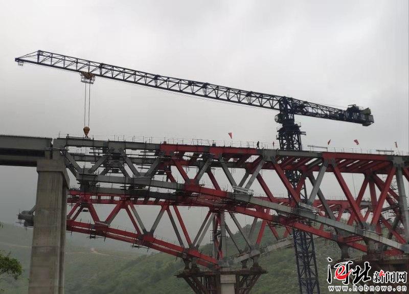 7月18日下午,隨著吊機緩慢松鉤,延崇高速河北段GQ3標(biāo)合同項目磚樓特大橋左幅18號墩主跨邊梁處,一根桿件在高空完成對接順利架設(shè)。圖為項目工程現(xiàn)場。記者劉雅靜 通訊員孫佳攝