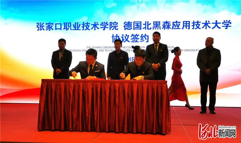圖為張家口職業(yè)技術(shù)學(xué)院與德國(guó)北黑森應(yīng)用技術(shù)大學(xué)簽約現(xiàn)場(chǎng)。河北日?qǐng)?bào)記者王雪威攝