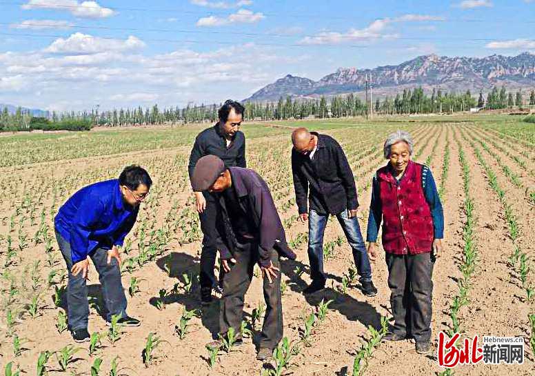 圖為河鋼宣鋼駐村扶貧工作隊(duì)隊(duì)員正在田間查看黑玉米長勢。