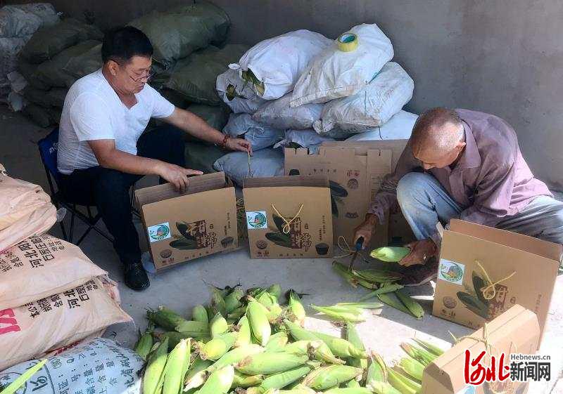 圖為河鋼宣鋼駐村扶貧工作隊(duì)隊(duì)員蘇煥忱(左)正在對黑玉米進(jìn)行裝箱。