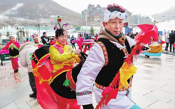 新春佳節(jié),在崇禮區(qū)太舞滑雪場(chǎng),當(dāng)?shù)厝罕婇_展豐富多彩的民俗活動(dòng),與前來滑雪娛樂的游客一起歡度新春。陳亮、馬佳琦攝影報(bào)道