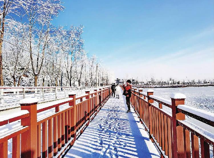 白雪卻嫌春色晚,故穿庭樹作飛花。日前,陽原縣迎來新春第一場雪,到處銀裝素裹,市民紛紛走出家門盡情享受美景。 張曉英攝影報(bào)道