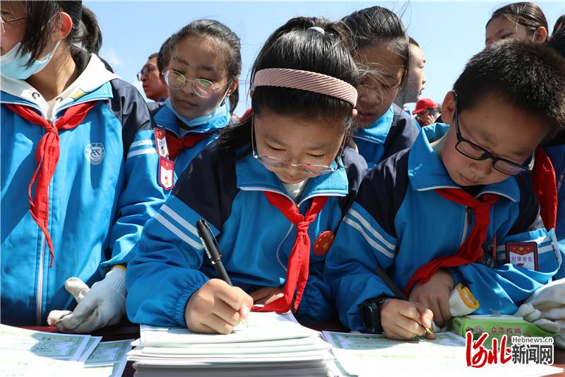 圖為小志愿者填寫義務(wù)植樹紀(jì)念證書。通訊員楊秀春攝