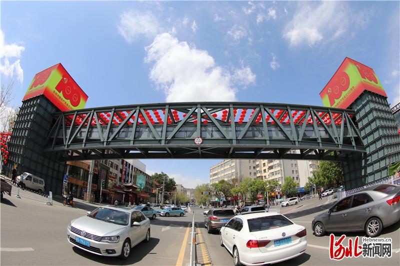 “五·一”假日期間,河北省張家口市主城區(qū)以晴好天氣為主,藍(lán)天白云下的城市路網(wǎng)、街心公園景色秀美壯觀。5月4日,河北省張家口市橋東區(qū)過街天橋景觀。岑屹攝影報(bào)道