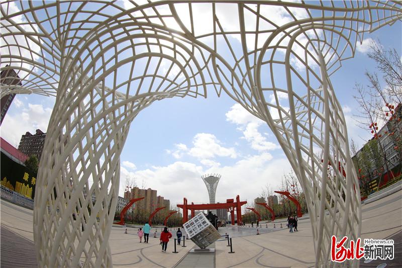 “五·一”假日期間,河北省張家口市主城區(qū)以晴好天氣為主,藍(lán)天白云下的城市路網(wǎng)、街心公園景色秀美壯觀。5月4日,河北省張家口市橋東區(qū)工業(yè)文化主題公園景觀。岑屹攝影報(bào)道