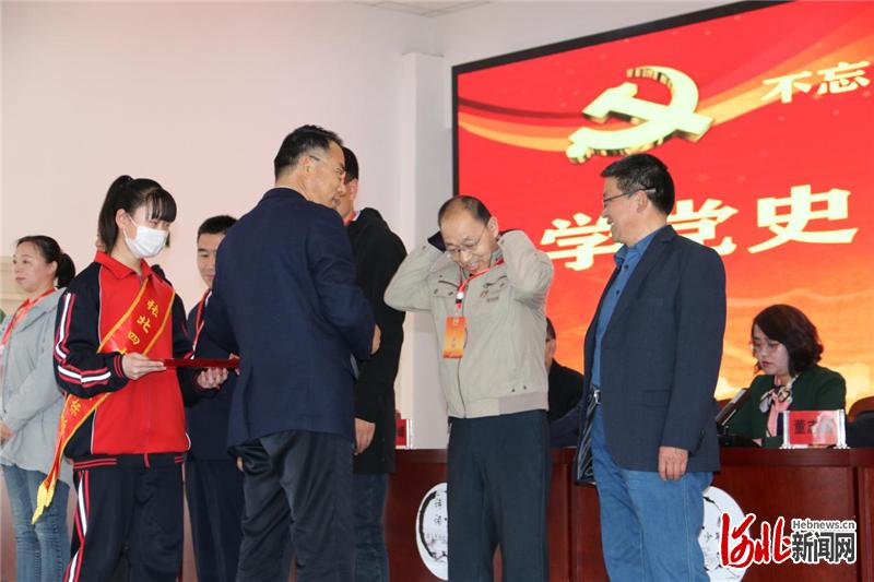 活動中,張北縣教體科局黨組書記、局長安亞平為宣講團(tuán)成員代表授牌。隨后德智中學(xué)黨支部副書記鈕占全老師為學(xué)生們上了一堂題為《傳承紅色基因,爭做時(shí)代新人》的黨史課。