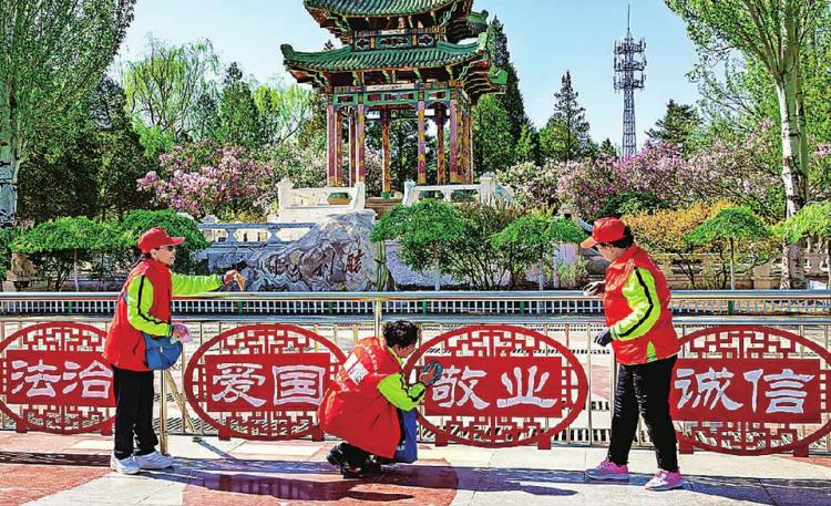 5月5日,張家口慈善義工聯(lián)合會(huì)愛(ài)心黃絲帶義工之家小分隊(duì)隊(duì)員來(lái)到勝利公園,清理、拾撿垃圾和廢棄物,擦拭宣傳牌和垃圾桶等,為美化冬奧城市環(huán)境貢獻(xiàn)力量。武殿森、孫增國(guó)攝影報(bào)道