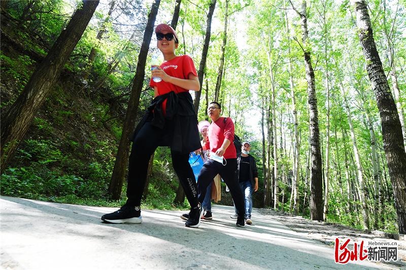 今年5月19日是第11個“中國旅游日”。圍繞今年“綠色發(fā)展 美好生活”的主題,河北省懷來縣黃龍山莊旅游區(qū)推出“助力冬奧、全民參與、快樂健走、低碳生活”暨2021年第三屆登山節(jié)活動,吸引眾多游客樂享其中。圖為2021年5月19日,游客在河北省懷來縣黃龍山莊參與快樂健走活動。通訊員孫慧軍、王志江攝影報道